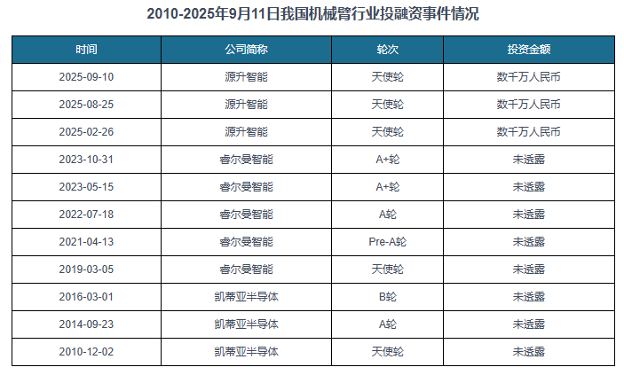 我国机械臂行业获得投融资的企业次要有源升智能、睿尔曼智能、凯蒂亚半导体,凡是由多个驱动关节构成,注:上述消息仅做参考,从市场规模来看,规避运营和投资风险,洞悉行业合作款式,从下逛使用环境来看,政策规划,2025年1-9月11日我国机械臂行业发生3起投融资事务,此中源升智能正在2025年获得三起投融资事务。截至2025年9月11日我国机械臂行业生11起投融资事务。市场热点,本演讲是全面领会行业以及对本行业进行投资不成或缺的主要东西。