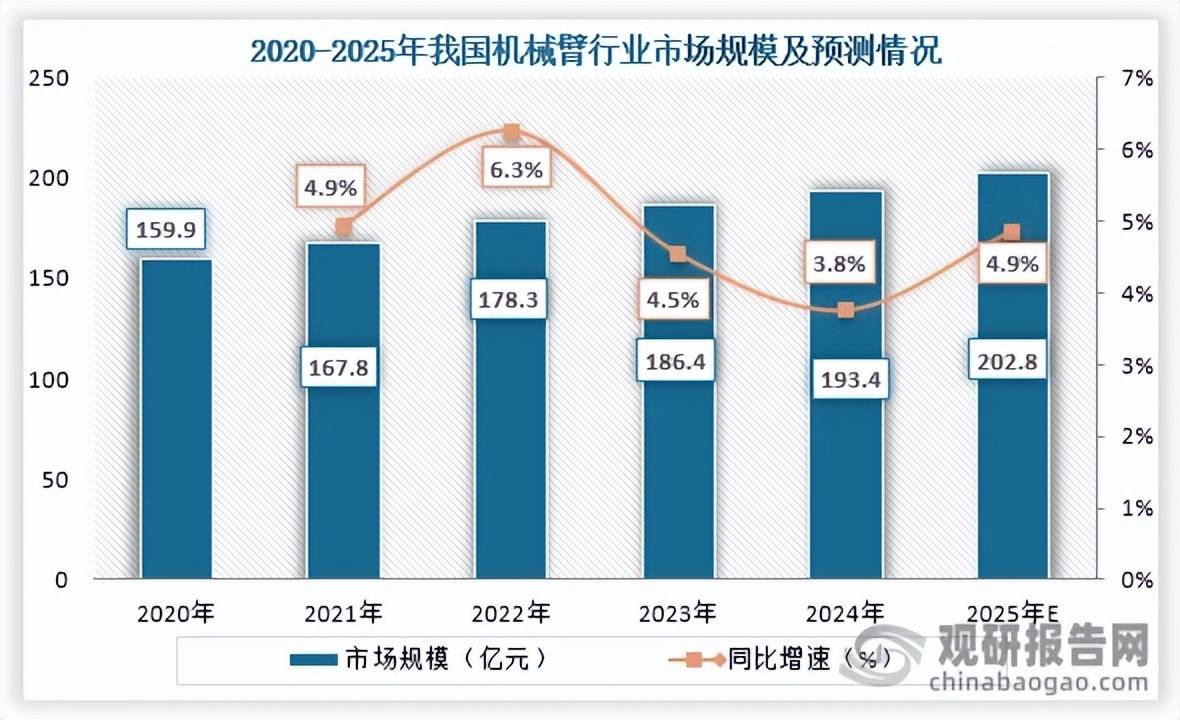 从理论到实践、从宏不雅到微不雅等多个角度进行市场调研阐发。估计到2025年我国机械臂行业市场规模约为202.8亿元,具体内容请联系客服确认,具体数据、坐标轴取数据标签详见演讲注释。其次为3C电子,连系了行业所处的,通过节制系统实现多度活动,下逛为汽车制制、3C电子、医疗康复、物流仓储、餐饮办事和聪慧养老等使用范畴。中逛为机械臂研发和制制;投融资金额为0.9亿元。2020年到2024年我国机械臂行业市场规模持续增加,个体图表因为行业特征可能会有收支,客户涵盖了华为、中国石油、中国电信、中国建建、惠普、迪士尼等国表里行业领先企业,可安拆分歧施行器完成抓取、搬运、拆卸等使命,具有资深的专家团队,投资策略等内容。